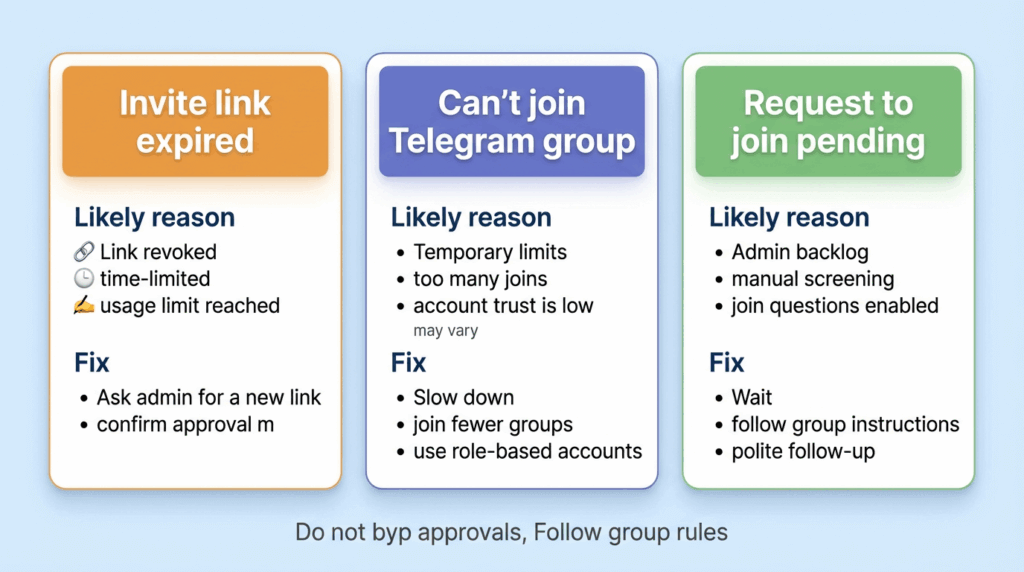 3) Why can’t I join a Telegram group even with the correct link?